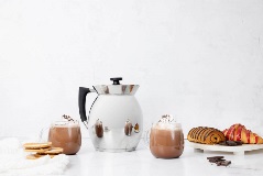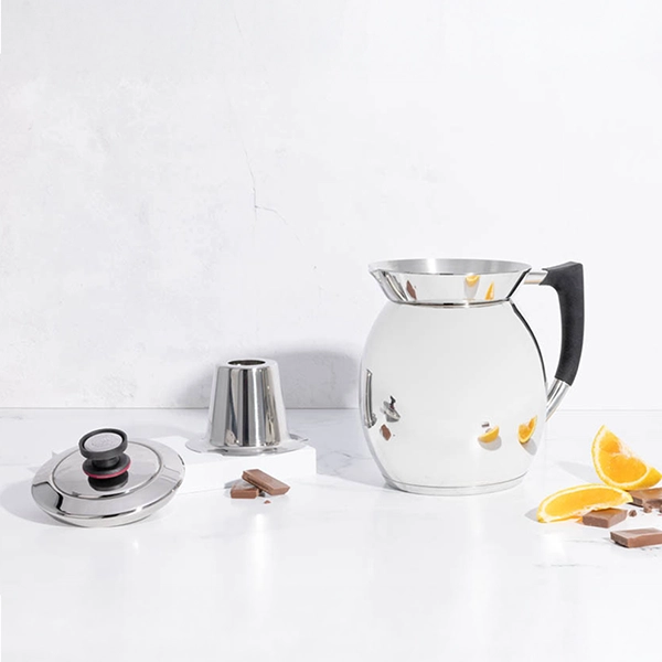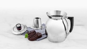 Diseñada especialmente para preparar el chocolate caliente más exquisito. La Royal Prestige® Chocolatera es fabricada en acero inoxidable grado quirúrgico de la más alta calidad, con diseño estilizado terminado a mano. Su exclusivo efecto de volcán te ayuda a evitar derrames en tu cocina, para una preparación más fácil y práctica. Apta para todo tipo de estufas: eléctricas, de gas o de inducción. Amplia capacidad de hasta 10 tazas (2.6 L).