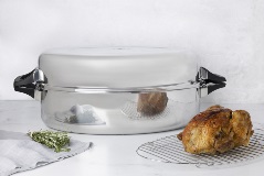 Cocina tu pavo sobre la estufa y prepara verdaderos banquetes para compartir en familia, en cualquier época del año. Fabricada con acero inoxidable grado quirúrgico y con garantía limitada de 50 años. Puedes usarla en el horno o sobre la estufa. Dimensión: 18” x 13” / 46 cm x 33 cm.